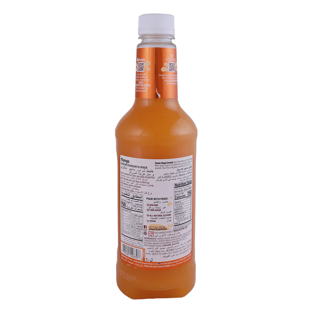 Master of Mixes is a top U.S. cocktail mixer brand, praised for using real fruit purees. Their Mango Daiquiri mixer sources premium Alphonso mangoes from India and key lime juice, creating a flavorful, bar?quality cocktail base widely used in bars/restaurants and homes